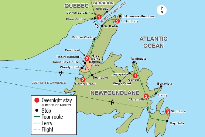A thorough look at one of the world’s special places, where the combination of outdoor adventure, history, culture, and especially the people creates a memorable experience for every visitor. We begin in Corner Brook on the island’s west coast, travel the Northern Peninsula to the Viking site at L’Anse aux Meadows, visit St Anthony’s Grenfell Centre, cross the Strait of Belle Isle to the Labrador coast to visit historic Red Bay, and take a boat tour on Bonne Bay in Gros Morne Park. Continuing across the province we visit King's Point, Lewisporte, Gander, Twillingate, Clarenville, Trinity, Bonavista, the Witless Bay Nature Preserve, Cape Spear, and St John’s Signal Hill. We enjoy 2-night stays in Corner Brook, St Anthony, Cow Head, and Clarenville, and a three-night stay in the province’s capital city of St John’s!